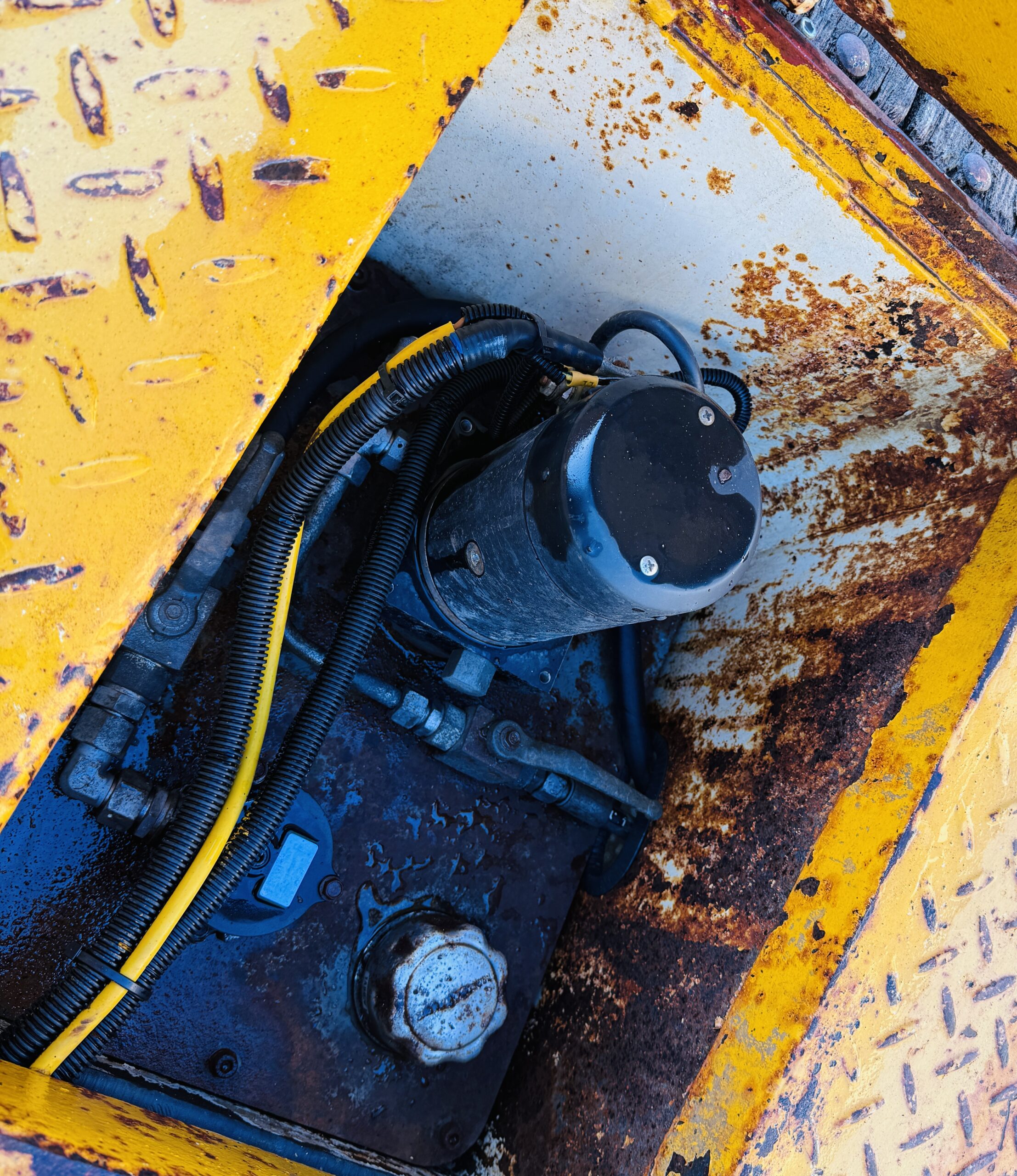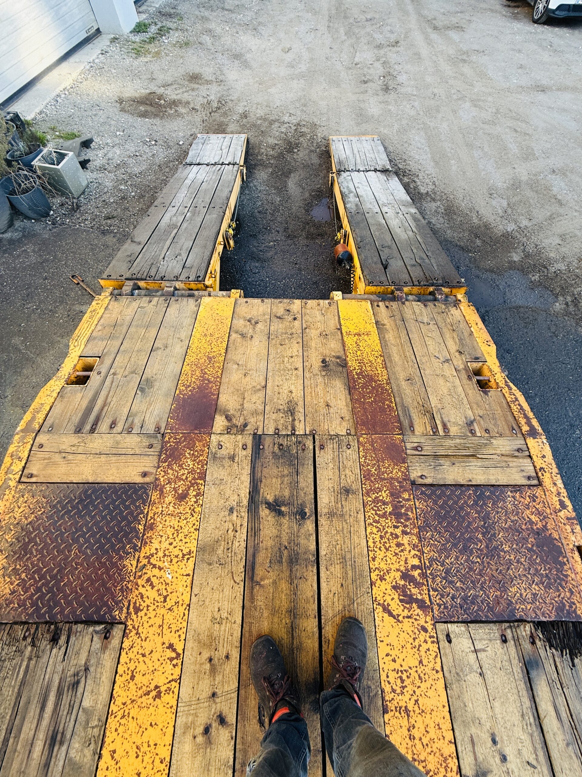 • Am Anhänger ist ein Hydraulik Aggregat verbaut zur elektischen Bedienung der Rampen (ebenfalls Batterien). Der Tieflader lässt sich ohne Zugfahrzeug öffnen und schließen.